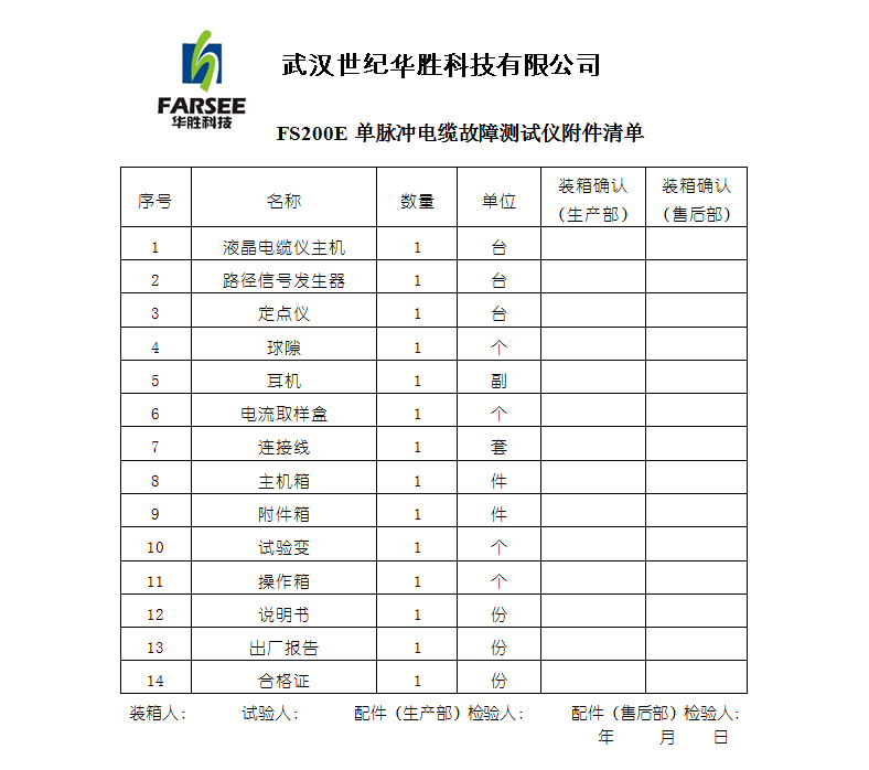 ◆FS200E電纜故障測試儀組成及技術參數(shù)