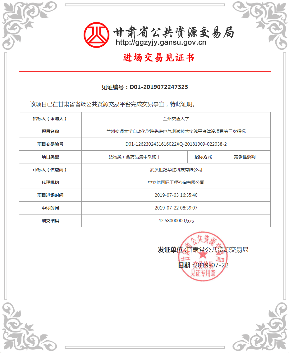 熱烈祝賀:武漢華勝公司在蘭州交通大學自動化學院先進電氣測試技術實踐平臺建設中標!